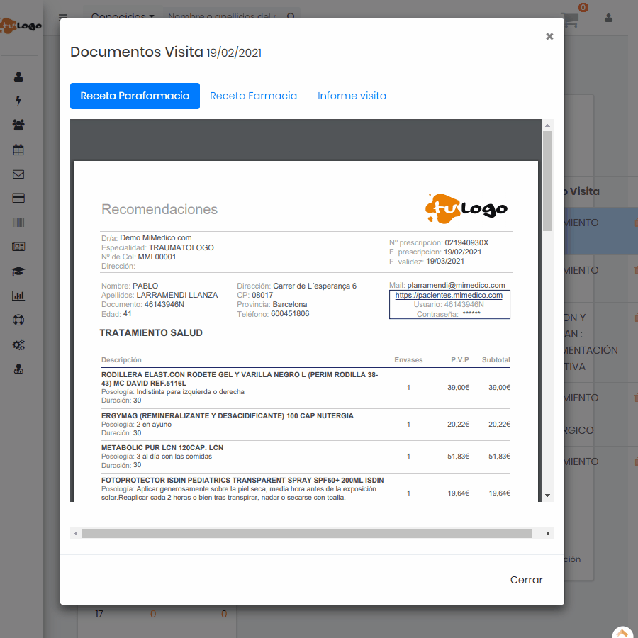 Herramienta de prescripción para la generación de receta de medicamento y recomendaciones